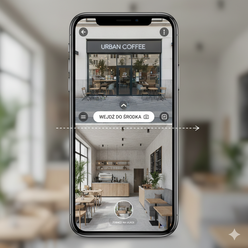 Oznacza to, że użytkownik, który „spaceruje” wirtualnie ulicą przed Twoją restauracją, sklepem czy siłownią, może po prostu kliknąć i wejść do środka. To płynne przejście buduje niesamowite poczucie realizmu i dostępności Twojego biznesu.